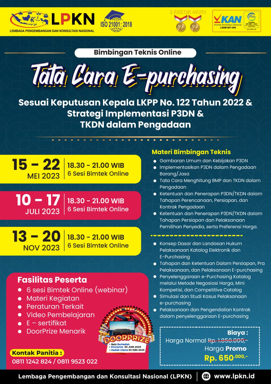 Lembaga Pengembangan dan Konsultasi Nasional (LPKN), adalah lembaga Pendidikan dan Pelatihan, dan telah berkiprah sejak 2005, saat ini LPKN telah tersertifikasi ISO manajemen mutu ISO 90001 2015 serta ISO Pendidikan 21001 2018, tahun 2020 dan 2021 juga mendapatkan 2 rekor MURI, sebagai penyelenggaran pelatihan terbanyak se Indonesia. LPKN telah Terakreditasi A Oleh Lembaga Kebijakan Pengadaan Barang/ Jasa Pemerintah (LKPP) – RI dan telah dipercaya oleh puluhan ribu Instansi Pemerintah serta BUMN, dan juga telah menghasilkan alumni lebih dari 3.000.000 orang, yang tersebar di seluruh Indonesia, berbagai materi Pelatihan termasuk Pelatihan Kompetensi dari BNSP, Kemenaker, LKPP, dan berbagai pelatihan kompetensi lainnya. Dengan komitmen yang kuat, menjadikan LPKN sebagai Lembaga Pendidikan terpercaya dan terus berupaya menghasilkan alumni yang berkualitas dan kompeten, serta mengkedepankan kualitas pelayanan dalam setiap penyelenggaraan pelatihan.