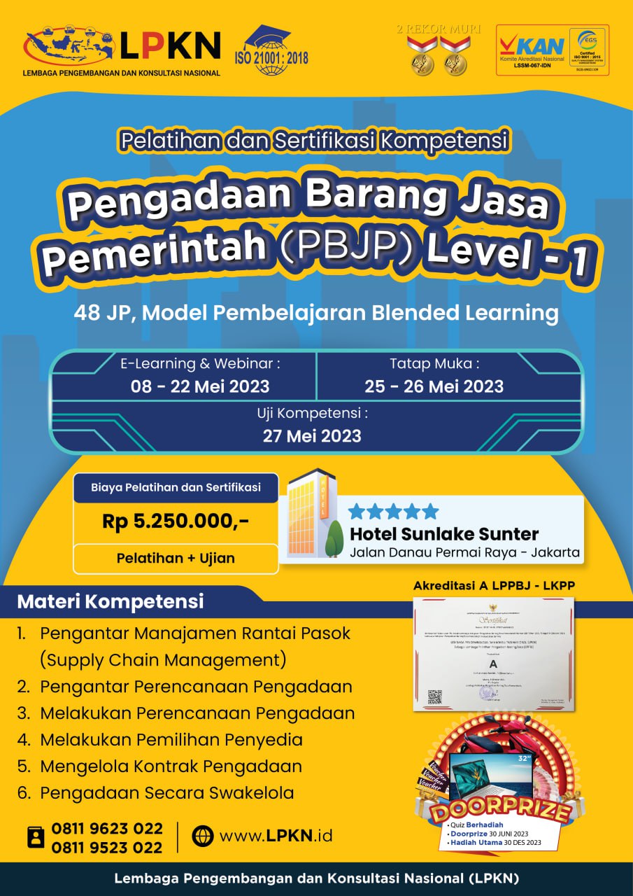 Lembaga Pengembangan dan Konsultasi Nasional (LPKN) merupakan lembaga Diklat resmi yang berdiri sejak tahun 2005, dan telah Terakreditasi A Oleh Lembaga Kebijakan Pengadaan Barang/ Jasa Pemerintah (LKPP) – RI, untuk kegiatan Pelaksanaan Pelatihan Pengadaan dan Sertifikasi Barang/ Jasa pemerintah. Saat ini telah memiliki Alumni sebanyak 1.300.580 orang, yang tersebar di seluruh Indonesia, LPKN juga telah medapatkan 2 Rekor MURI, dalam penyelenggaraan Webinar dengan jumlah Peserta lebih dari 100.000 orang.